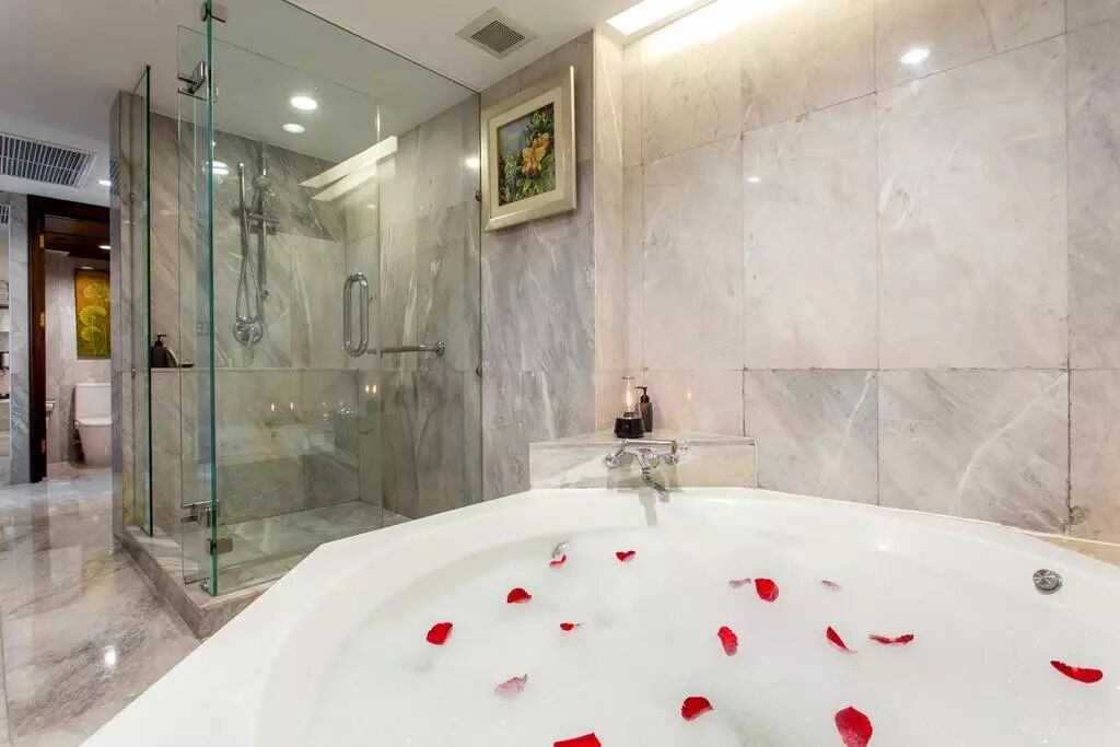 每间宽敞的现代化浴室均配有浴缸和免费洗浴用品。部分客房拥有独立的起居室、用餐区、露台和外部的私人热水浴池。