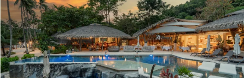 建筑材质:采用可回收木材与茅草屋顶,减少环境足迹,同时削弱现代感,让建筑与雨林和谐共生。