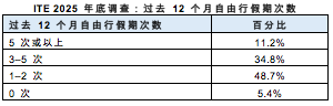 a. 过去一年内,94.6%受访者至少进行了一次自由行假期,进一步印证自由行的主导地位。