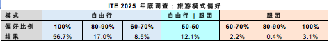 然而,2025年底一项针对「自由行旅客的外游消费行为」的补充调查发现,偏好自由行的旅客中,也有一部分人偶尔会考虑参加旅行团。
