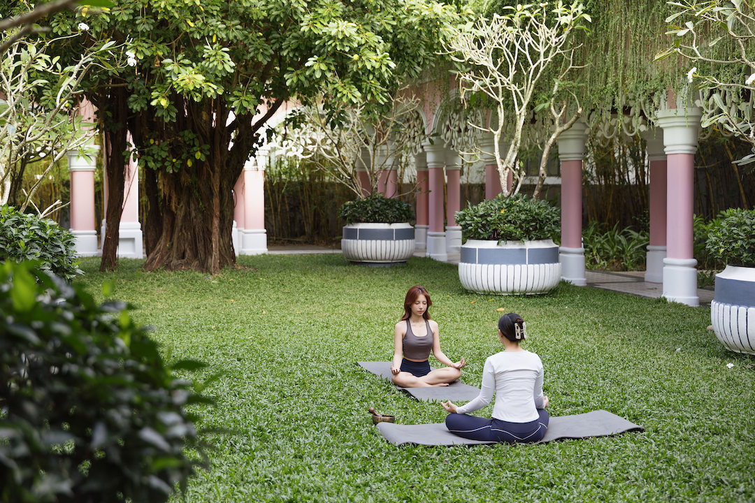 派对以宁静的修养体验开场。在 Chanterelle Spa,一场融合了引导式冥想与定制芳香疗法的课程,帮助宾客沉淀思绪,卸下疲惫。随后,移步至星光初现的庭院,在专业老师的带领下,进行一场户外瑜伽与钟磬冥想。身体的舒展与空灵清澈的磬音共鸣,仿佛为身心做了一次深层的“清扫”与“重启”,以最澄澈的状态迎接接下来的味觉旅程。