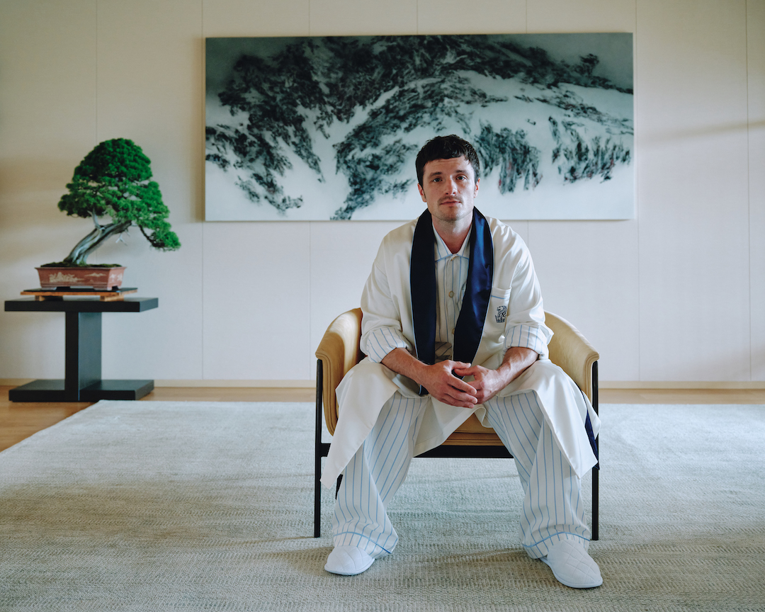 100%纯棉条纹睡衣套装为私享时光增添精致格调,利落的白蓝条纹设计,在松弛感与精致感之间达成完美平衡;丝滑缎面睡袍,饰以藏青撞色镶边,正反两面均绣有品牌标志性纹样,醒目吸睛;连帽衫兼顾舒适与巧思设计;经典基础T恤及实用派克大衣更是为整个系列点睛增色。每件单品均印有丽思卡尔顿与Late Checkout的复古字体标识,彰显两大品牌经典隽永的美学格调。