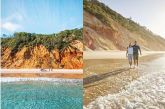 彩虹海滩以风光秀丽和色彩丰富的古老沙丘而著称,其名字的由来,源于绵延海岸线上由多达72种不同颜色的砂岩形成的壮观沙丘,高达200米的沙丘为海滩带来了彩虹般变化多彩的颜色。当地原住民赋予了这片海滩更神话的精彩故事,他们说彩虹海滩的名字来自于一位神灵,他在战死后撞上悬崖,灵魂化成彩虹,赋予了这片沙滩缤纷的色彩。探索彩虹沙滩的最佳方式是自驾,从努沙主海滩沿着大海滩公路(Great Beach Drive)饱览彩虹沙滩的多彩变换,再前往世界第一大沙岛——卡丽岛展开冒险旅程。
